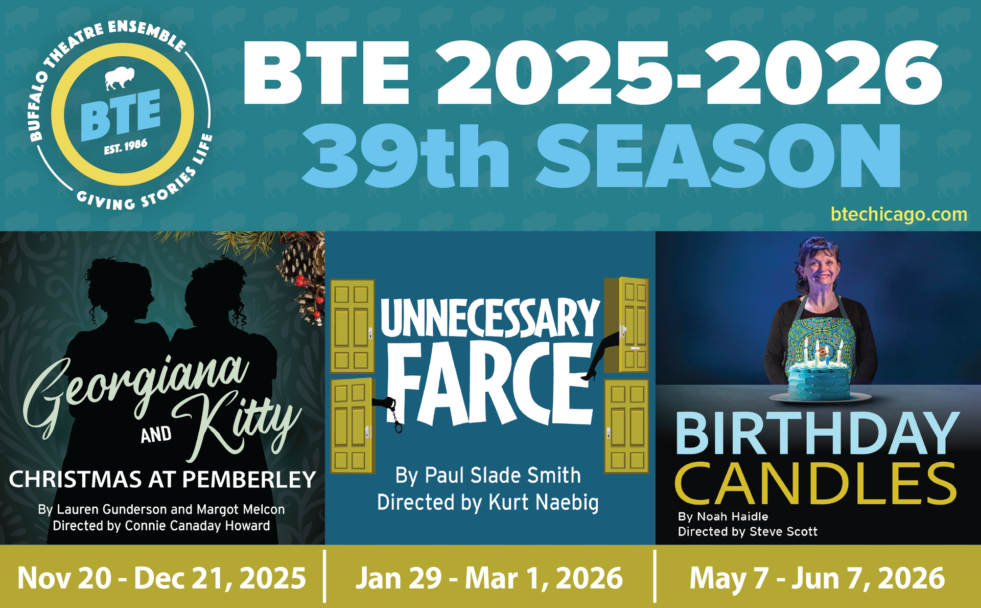 Welcome to Buffalo Theatre Ensemble's 39th Anniversary Season! We are proud to continue our mission ofGiving Stories Life by offering productions that embrace the humor, heart, and humanity of everyday life. This season, we invite you to experience stories of second chances and unexpected love, dizzying misunderstandings and comic chaos, and one woman's poetic journey through a lifetime of birthdays. Each production reminds us of the beauty found in connection and the joy of sharing the present moment together.